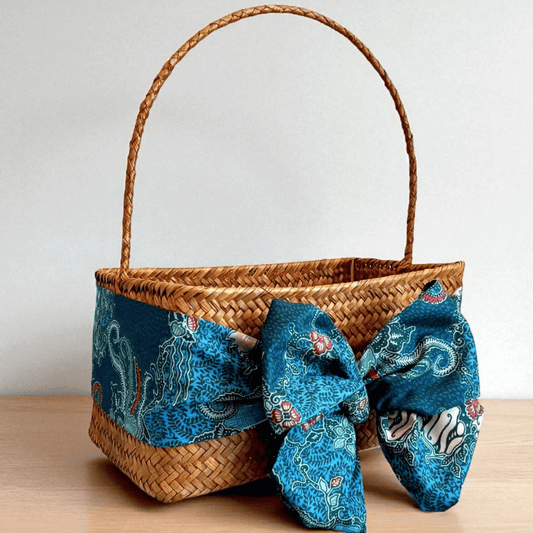 Traditional Bamboo Hamper Basket with Handle